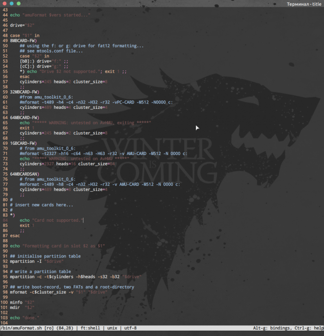 После долгих лет использования консольного редактора nano, нашел достойную замену в лице [micro](https://micro-editor.github.io/). После долгих лет использования консольного редактора nano, нашел достойную замену в лице micro. Из особенностей: Далее покажу как я отредактировал конфиги по себя. Открываем файл настроек Тему формления выбрал simple. «softwrap»: true — перенос строк если занимают больше чем область окна. Далее указываем горячие клавиши Более подробно о сочетаниях клавиш можно прочитать здесь. Вот вообщем-то и всё. :).config/micro/settings.json