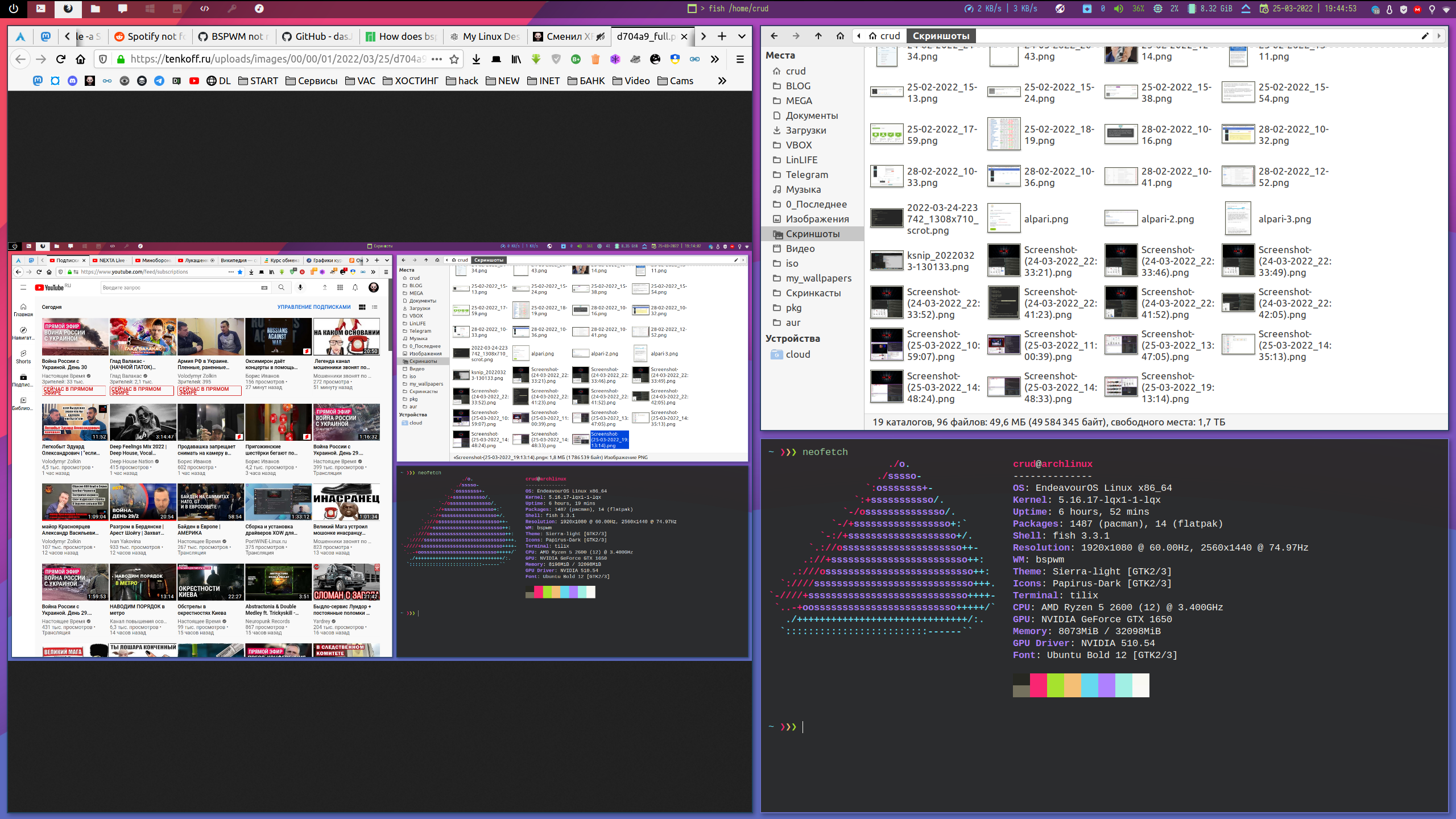 Всё началось с того, что когда сидел ковырял код блога, понял, что зарываюсь в открытых окнах. Потытался реализовать в xfce виртуальные столы + devilspie, но это работает через жопу. Всё началось с того, что когда сидел ковырял код блога, понял, что зарываюсь в открытых окнах. Потытался реализовать в xfce виртуальные столы + devilspie, но это работает через жопу. И вот вчера произошло великое событие, после нескольких дней теста в вирутальной машине, я мигрировал в DE BSPWM. Не всё так гладко было с переходом, именно с адаптацией под то к чему привык, настройки самого DE + polybar, но сегодня практически решил все ньюансы. Сильно подвел менеджер паролей ENPASS в котором шрифт стал слишком мелкий, но «погуглив» решилось запуском с параметром и закрепив за опеределённым рабочим пространством. Из-за чего шрифт уменьшился я так и не понял (везде всё осталось как было). Еще есть маленький момент который я пока не понял с работой со 2 монитором, но думаю в ближайшее время разберусь. Ну и надо хоткеи выучить, основные уже руки помнят, а вот связанные с изменением размеров надо позапоминать. Вообщем, я очень рад :)QT_FONT_DPI=150